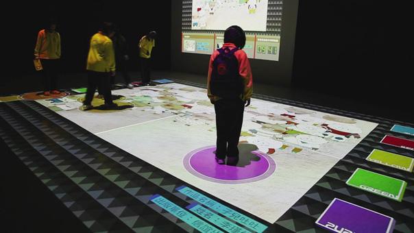 地面互動投影系統采用懸掛在頂部的投影設備把影像效果投射到地面,當參訪者走至投影區(qū)域時,通過系統識別,參訪者可以直接使用雙腳或動作與投影幕上的虛擬場景進行交互,各種 ……